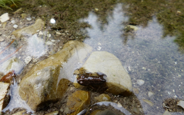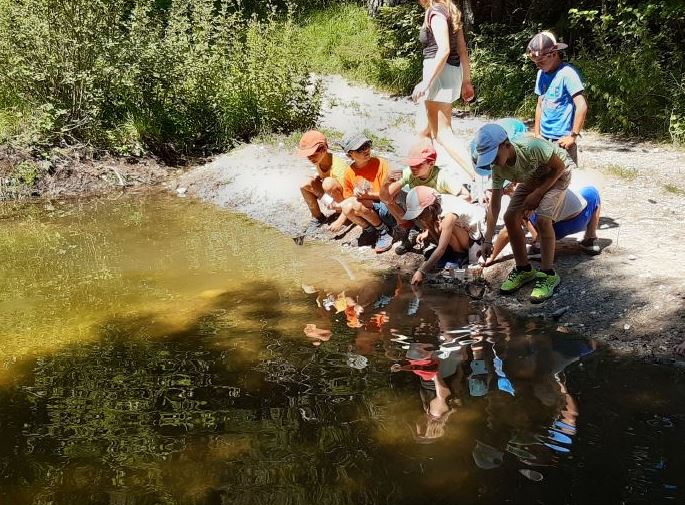 La réalisation d’une plateforme d’observation sur la mare pédagogique. Anthonin Goubault, charpentier à Tréminis a opté pour l’utilisation de bois locaux pour sa construction : des pieux en aulne glutineux brûlés pour les supports immergés et une plateforme en mélèze de Gresse en Vercors. Cette structure permet une observation confortable et en sécurité des petites bêtes de la mare. Chose faite lors de l’animation de la fête des mares début juin puisque nous avons assisté à l’émergence des larves de demoiselles.