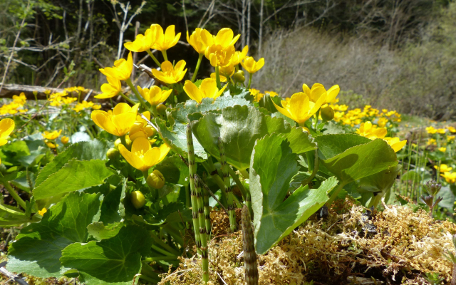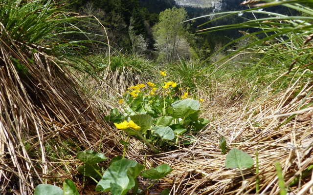 Ce marais a en effet la particularité d’être situé sur la ligne des cols qui relient les Alpes du Nord aux Alpes du Sud, en plein cœur d’une zone de transition climatique. Ainsi se mêlent sur une petite surface des plantes à affinités méditerranéennes comme le Cirse de Montpellier et d’autres qui affectionnent le froid comme la belle Populage des marais.