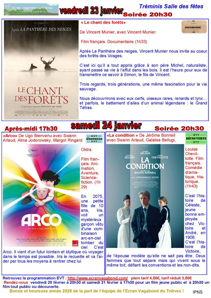 Au cinéma avec l’Ecran Vagabond du Trièves en janvier et séance surprise Clelles