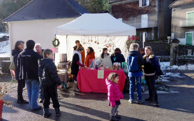 Marché de Noël du Sou des écoles le matin devant l’épicerie.
