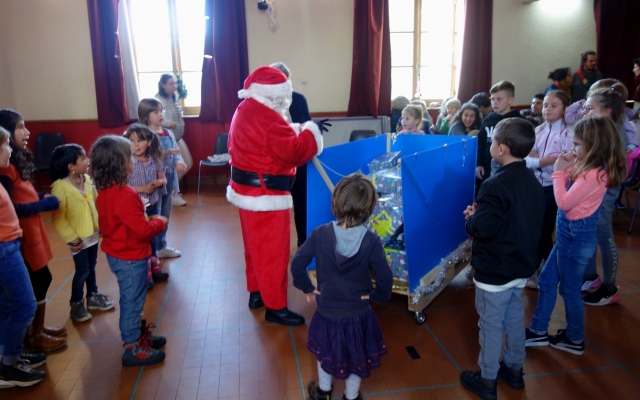 à 14h30 le dernier spectacle de marionnettes de la compagnie Talabar intitulé « Quel Bazar ! ». Surprise de la classe. Puis arrivée du Père Noël, distribution des cadeaux suivie d’un délicieux goûter !