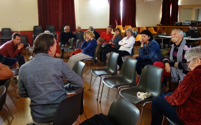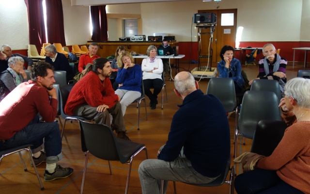 Soirée animée et dense sur le thème du documentaire « “J’veux du soleil” à Tréminis, vendredi 26 avril, premier village du Trièves à proposer ce film.