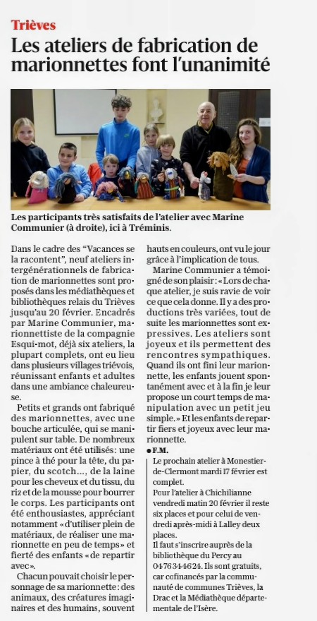 les vacances se la racontent : Ateliers marionnettes 12 février