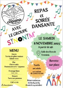 Repas et soirée dansante proposé par la nouvelle association “les copains d’abord” avec le groupe Synonym